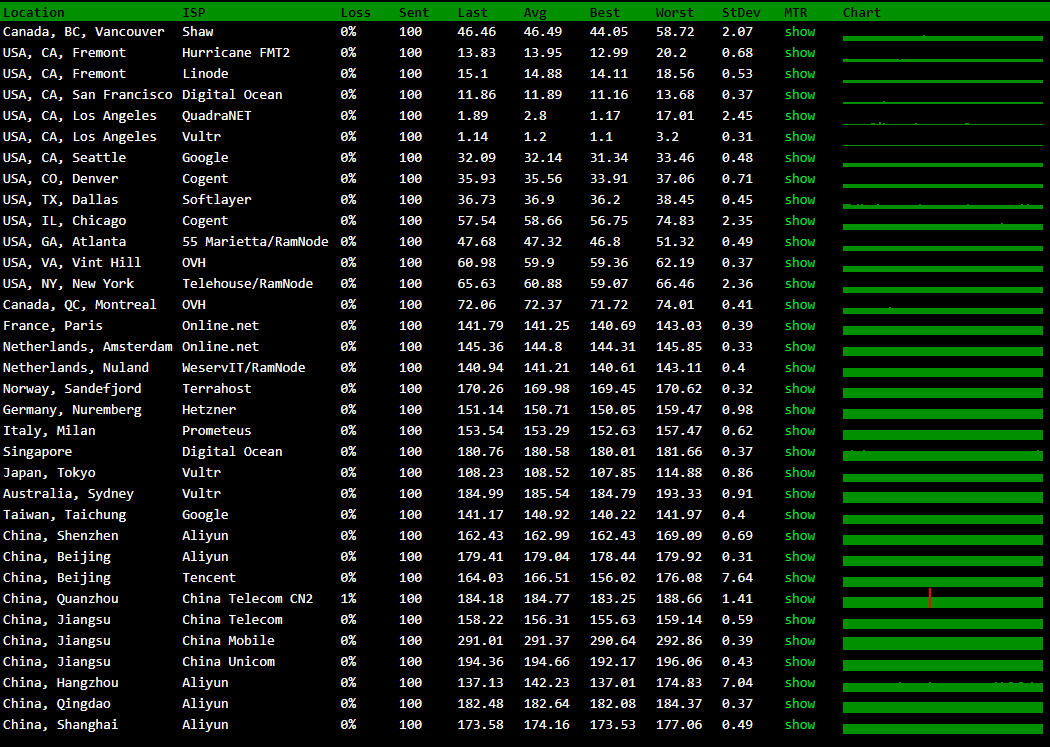 | 线路 | 最快节点 | 最慢节点 | 平均响应 |