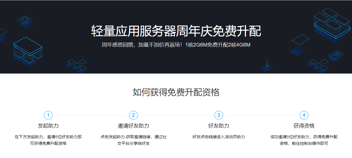 2021年9月30日 腾讯云轻量周年庆免费升配:1核2G6M免费升配2核4G6M By Jayden 其他 0 评论 腾讯云轻量应用服务器周年庆免费升配,周年感恩回馈,加量不加价再返场!1核2G6M免费升配2核4G6M。 通过邀请5位好友完成分享助力,即可获得轻量应用服务器 1核2G6M 套餐免费升配至 2核4G6M 套餐资格。 活动地址:https://cloud.tencent.com/act/pro/lighthouseoneyear 标签:腾讯云, 腾讯云轻量 随机文章 阿里云99计划,国内和境外2C2G50G配置MySql数据库¥99一年,新老用户均可购买 如何更改 Google Play 国家或地区设置 BuyVM 拉斯维加斯LV Block Storage Slab(存储块)补货,256G/月付$1.25起,最高可选10T。