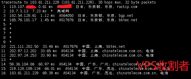 | 18 | 221.111.203.97 | 中国香港 bbtec.net | AS17676 | 16.2 / 15.8 / 15.3 |