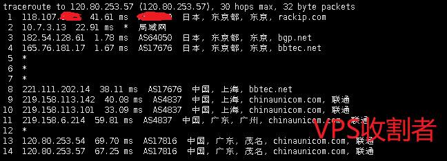| 13 | 165.76.181.18 | 日本东京都东京 bbtec.net | AS17676 | 59.9 / 59.8 / 59.9 |