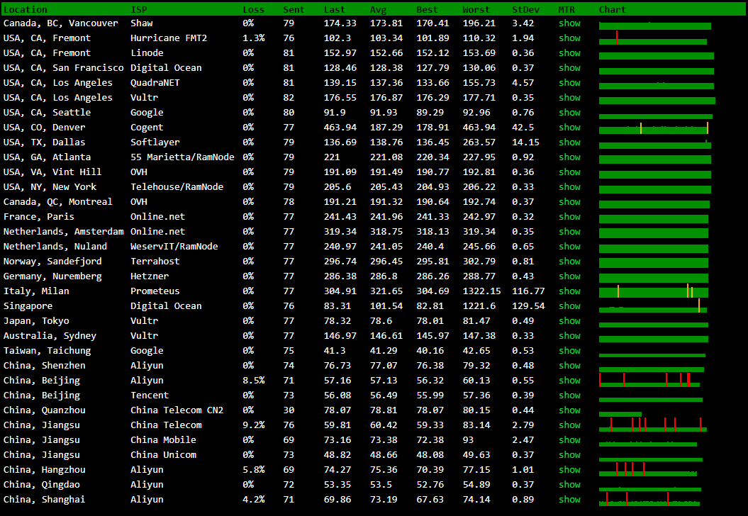 | 线路 | 最快节点 | 最慢节点 | 平均响应 |