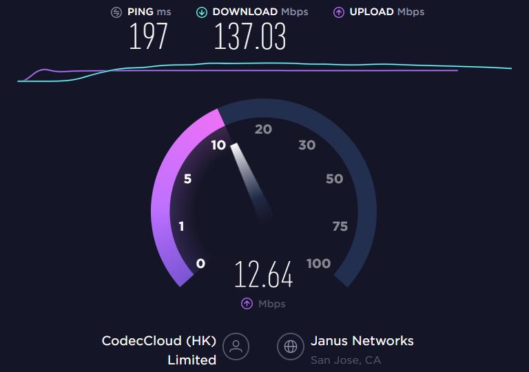 广州100M联通宽带进行测速, 没有CN2的情况下SpeedTest能跑出137Mbps的速度,油管速度也相当好,稳定在80000kbps以上,有望8k在线观看!