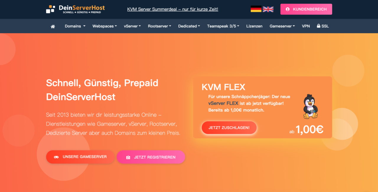 DeinServerHost,德国主机商,2013年成立,主要提供德国虚拟主机、VPS、独立服务器等。
