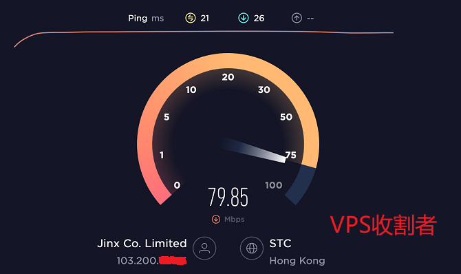 广州移动300Mbps宽带进行测速,Speedtest单线程跑到了80M水平,对于一台100Mbps的小鸡来说算是不错的了,油管2k秒开,拖拽也没有明显的延迟,而根据VPS测试脚本的反馈各地三网表现都非常友好。